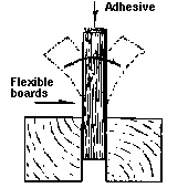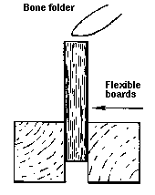 This is a temporary binding which may be adapted to a variety of styles. According to the writer of the original information sheet on which this material is partly based, the strength of the product is assisted by the choice of paper and adhesive, penetration of the adhesive, angled saw-cuts, band-driving and the thickness of the glueline. The technique is unsuitable for coated papers.